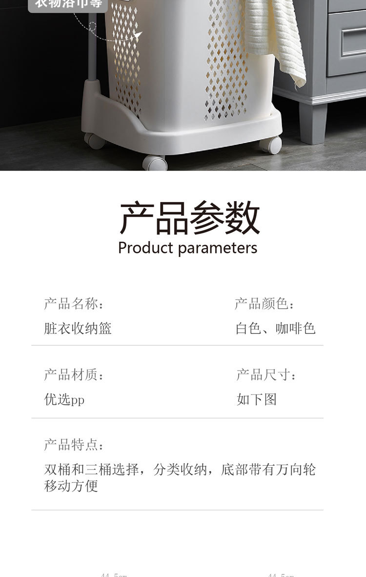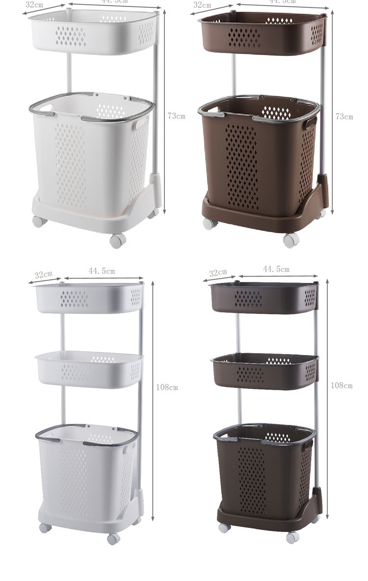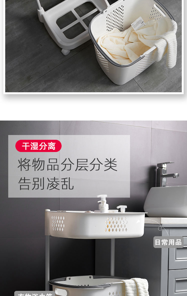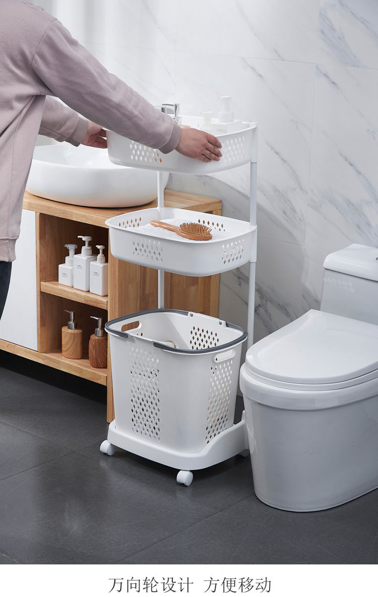 厂家直销大号三层脏衣篮 浴室塑料脏衣收纳篮 多功能带滑轮储物篮